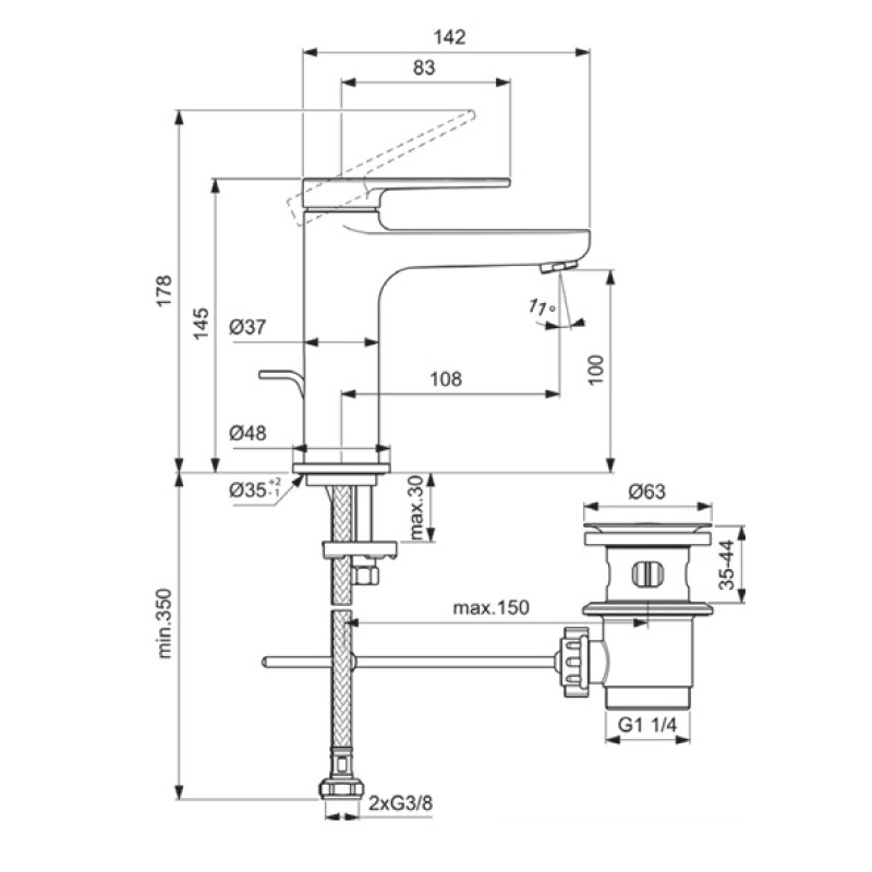 Praustuvo maišytuvas O.Nuovo juodas matinis  su dugno vožtuvu