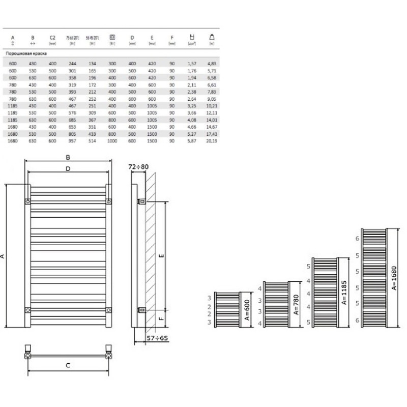Chromuotas: 600x430 (120W); 600x530 (200W); 600x630 (200W); 780x430 (200W); 780x530 (300W); 780x630 (300W); 1185x430 (300W); 1185x530 (400W); 1185x630 (400W); 1680x430 (400W); 1680x530 (400W); 1680x630 (600W);