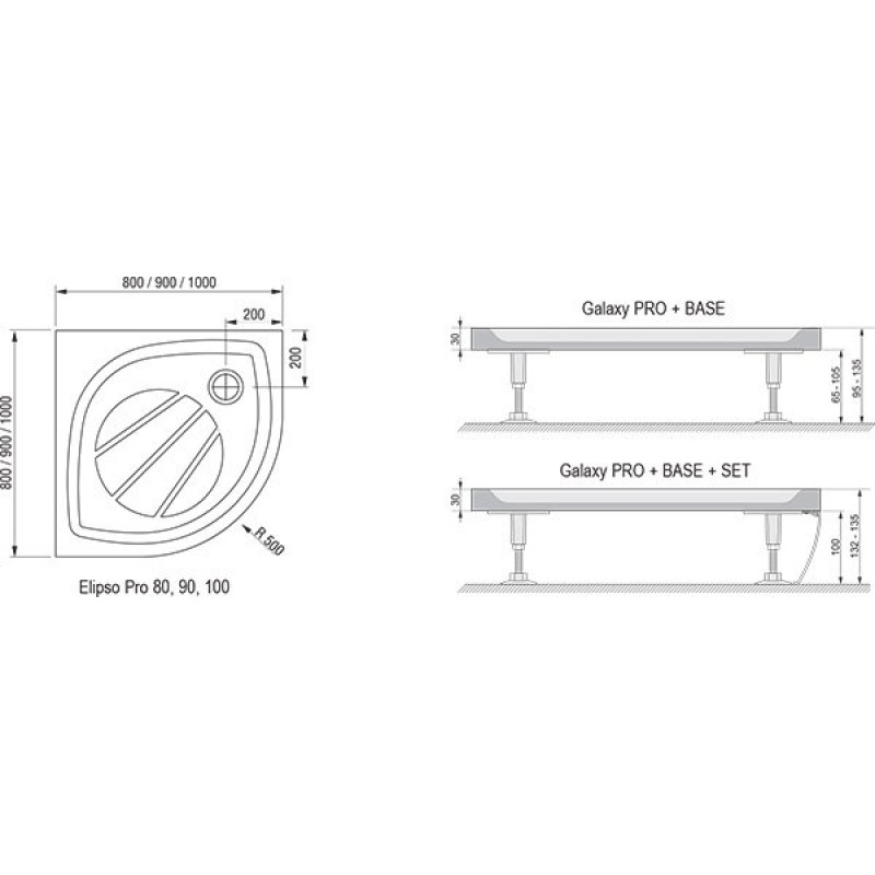Ravak Elipso Pro dušo padėklas pusiau apvalus iš lieto marmuro 80x80 cm