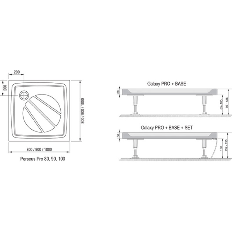 Ravak Perseus pro dušo padėklas kvadratinis iš lieto marmuro 100 cm