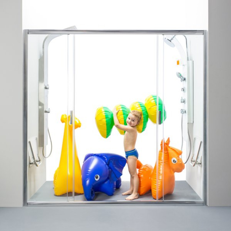 Plačiausios rinkoje dušo durys su centriniu įėjimu. Idealus sprendimas sukurti dušo erdvę nišoje, kurios plotis iki 200 cm.