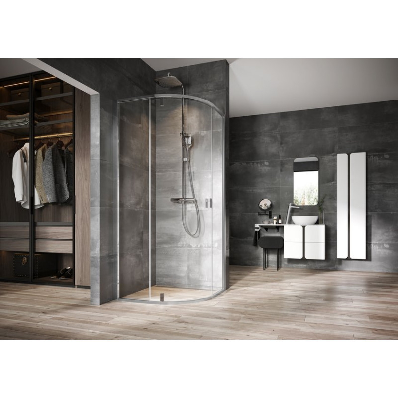 Dušo kabina, pusapvalė, trijų elementų | NSKK3-80 blizgi+Transparent