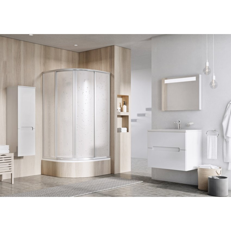 Dušo kabina, pusiau apvali, keturių elementų | SKCP4-80 Sabina balta+plastikas Pearl