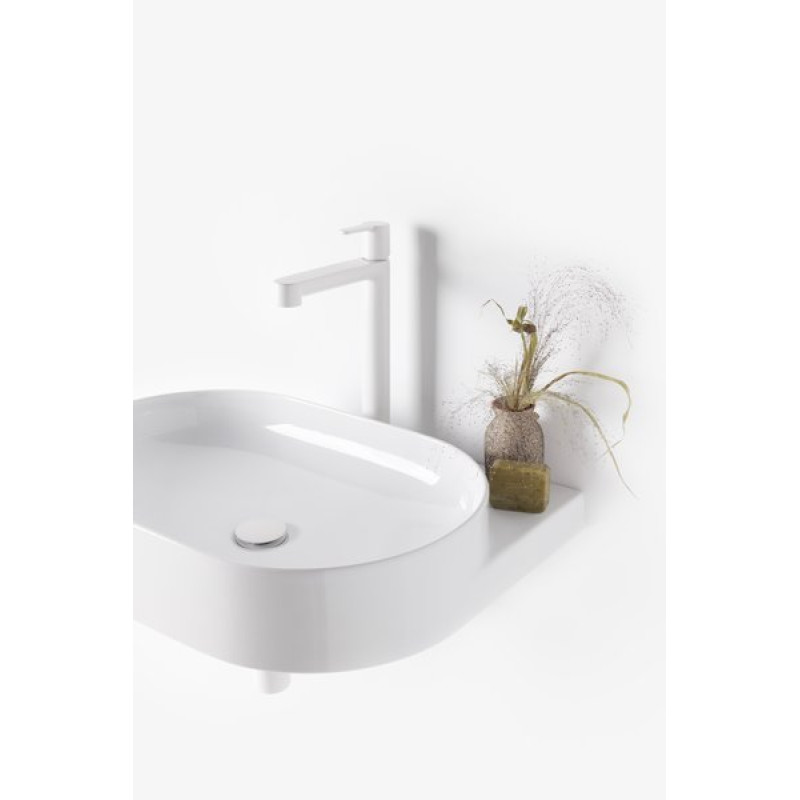 Ovalų praustuvą papildo dizaino elementas – baltas, juodas arba nerūdijančio plieno laikiklis. Elegancijos magija sujungia laikiklį, maišytuvą, sifoną ir dugno vožtuvą į vientisą derinį.