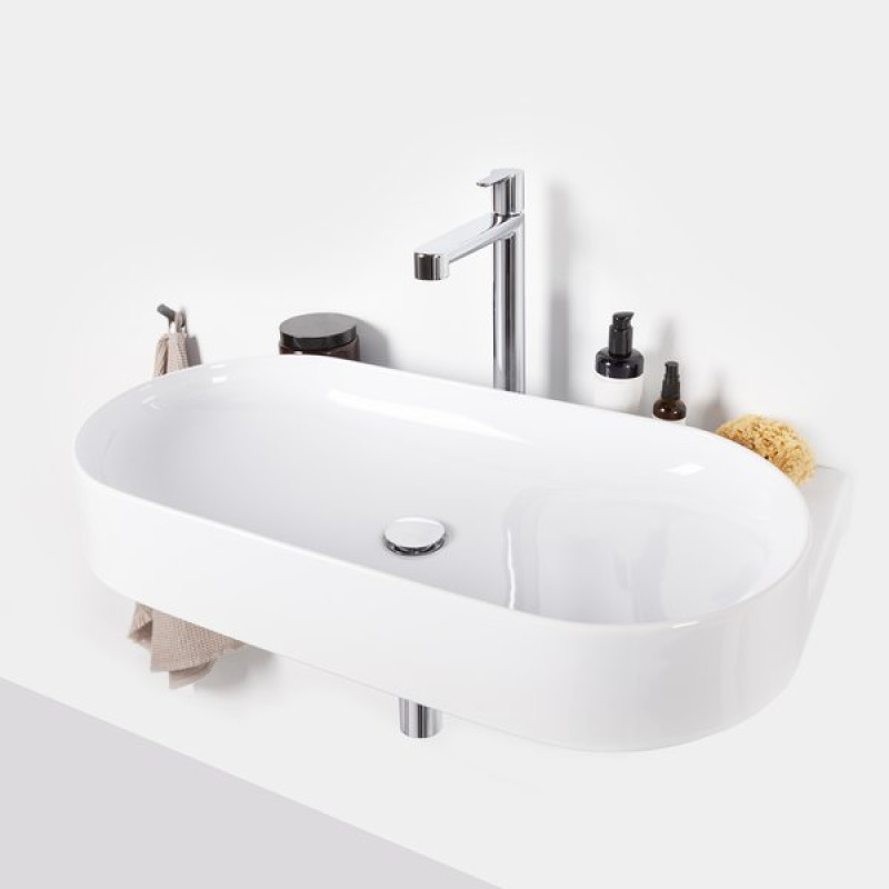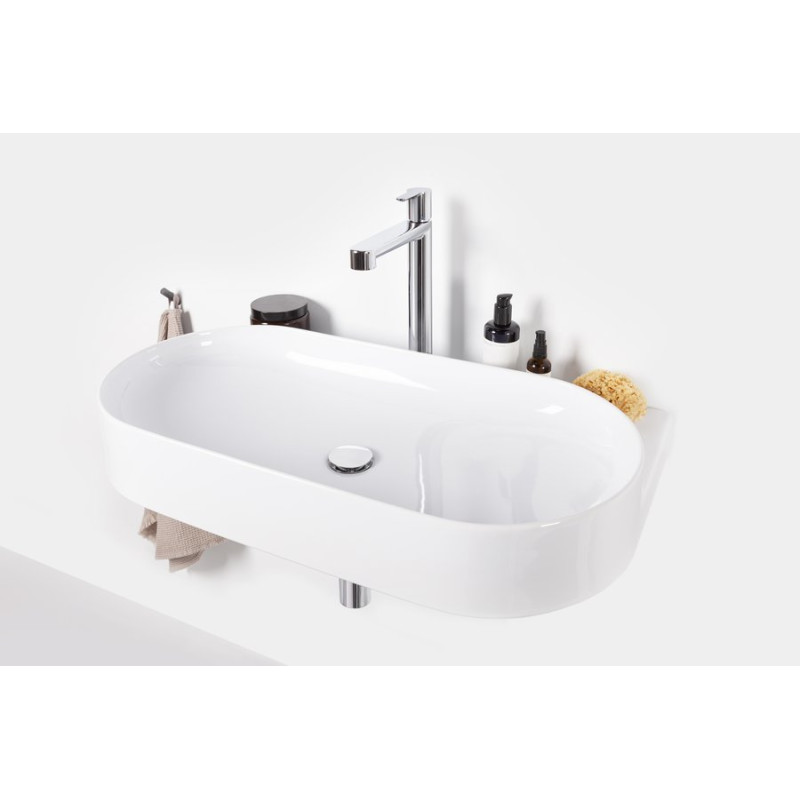 Ovalų praustuvą papildo dizaino elementas – balto, juodo arba nerūdijančio plieno laikiklis. Elegancijos magija sujungia laikiklį, maišytuvą, sifoną ir dugno vožtuvą į vientisą derinį.