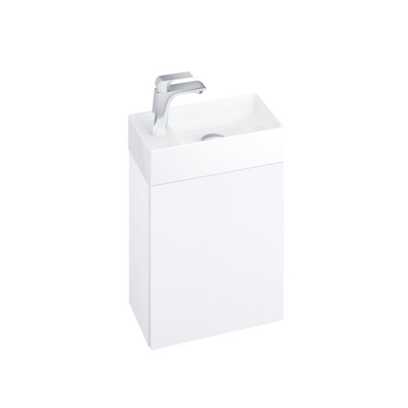 Baltos spintelės kompaktiškos formos kartu su mini praustuvu Veda 400 sudaro praktišką visumą, leidžiančia pasirūpinti rankų higiena tualetų patalpose ir ypatingai mažuose vonios kambariuose. Uždaroma spintelė leis suslėpti, pavyzdžiui, WC valiklius.