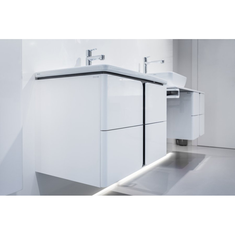 Pakabinamą spintelę SD Balance 800 siūlome baltos/baltos arba baltos/grafito spalvos. Spintelės vidus visada yra grafito spalvos. Du praktiški stalčiai, palengva grįžtantys į pirminę padėtį, suteikia pakankamai vietos sudėti daiktams. Skirta po įleidžiamu praustuvu Balance 800 be perpylimo, papildyta praustuvo sifonu su stacionariu perpylimu. Spintelę galima taip pat papildyti balta plokšte Balance 800 ir praustuvu, montuojamu ant plokštės (pvz. Uni / Uni Slim linijos).