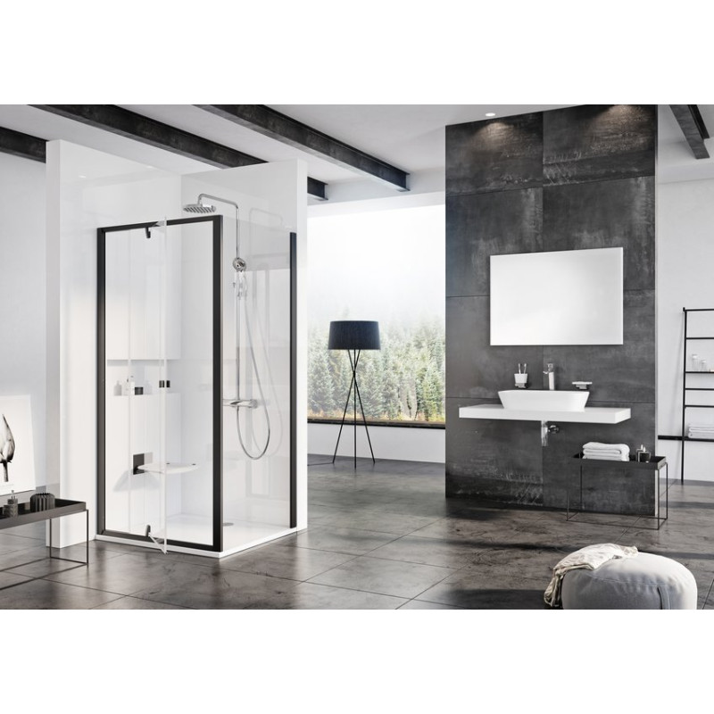 Dušo durys su stacionaria sienele | PPS-90 juodas+Transparent