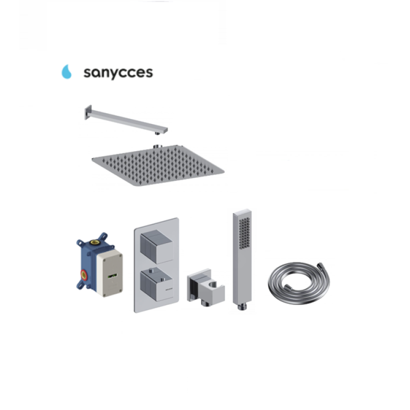 Termostatinė Dušo sistema Cubo kvadratinės formos, su 250mm dušo galva.