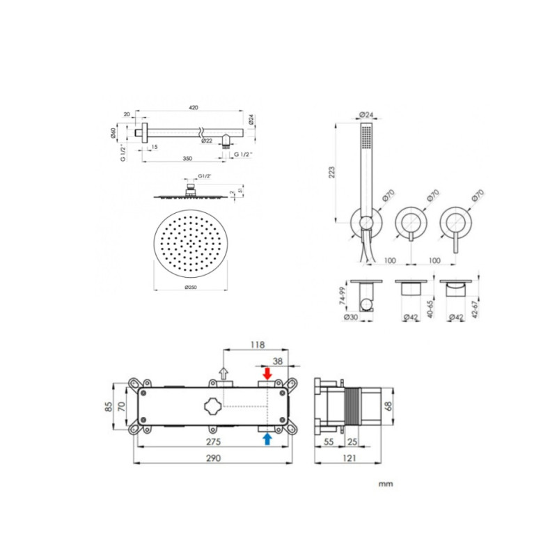 - Lietaus dušo galvos alkūnės ilgis - 420 mm