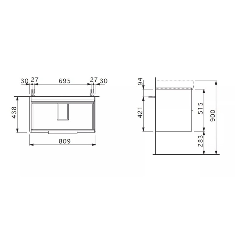 Spintelė su praustuvu Laufen Base 80 cm, balta blizgi H4023921102611