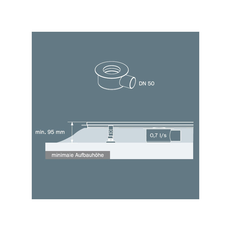 • TECEdrainline sifonas dušo latakams DN50, su išimama hidrauline kvapo užsklanda Montavimo aukštis 95 mm
