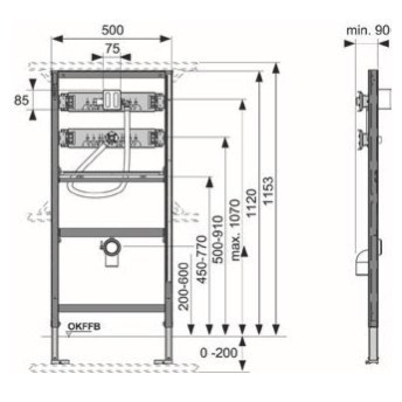 - Dvi reguliuojamos atramos tvirtinimui ant grindų (h = 0-200 mm).