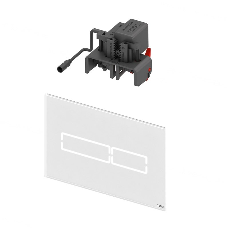TECElux Mini Nuleidimo plokštelė su elektroniniu, bekontakčiu "touch-free" nuleidimo mechanizmu (9240960). Plokštelės komplekte taip pat yra transformatorius su pajungimo laidais. Inovatyvaus dizaino bei funkcionalumo klavišas pasižymi bekontakčiu vandens nuleidimu. Tai reiškia, jog nebūtina liesti klavišo, norint aktyvuoti vandens nuleidimą. Atstumo jutiklis, atpažinęs prie tualeto priėjusį asmenį, įjungia šviečiantį mygtuko plotą, kuris taip pat padeda susiorientuoti tamsoje.