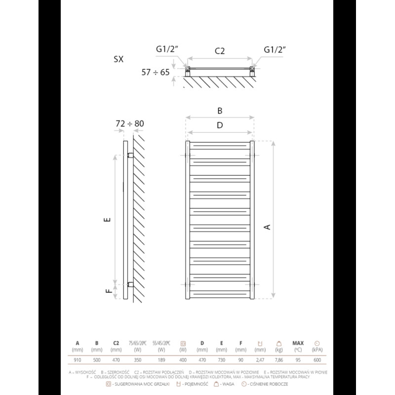 Elektrinis rankšluosčių džiovintuvas Hermes 910x500 baltas