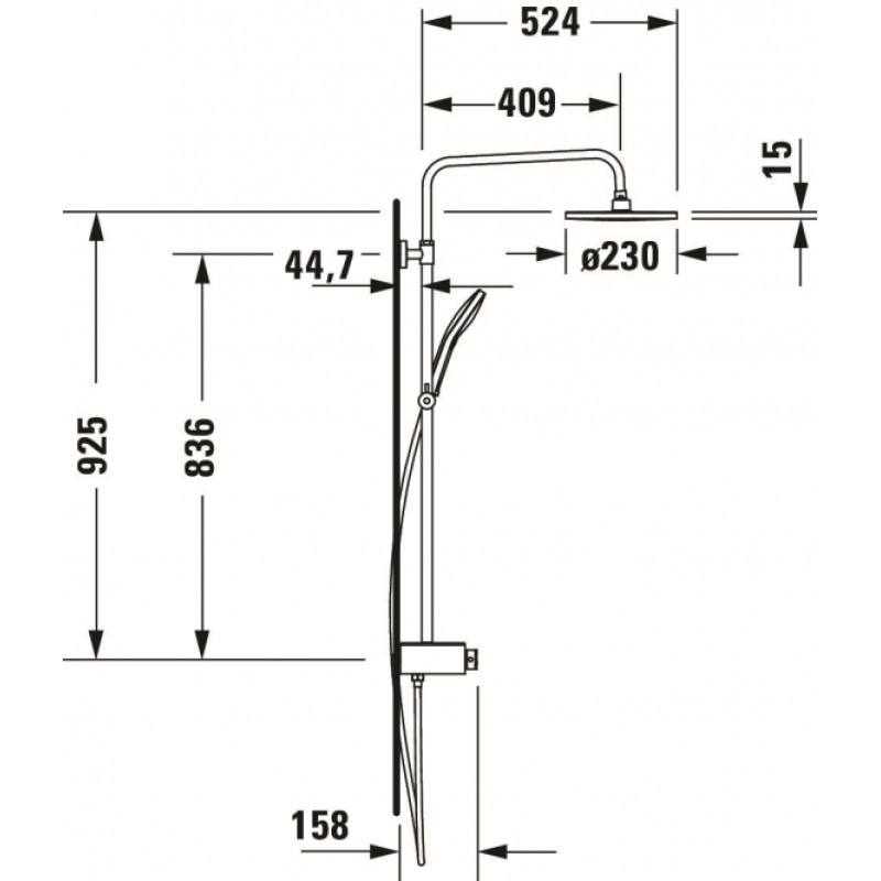 - Dušo galva: 1 Jet; Ø230 mm