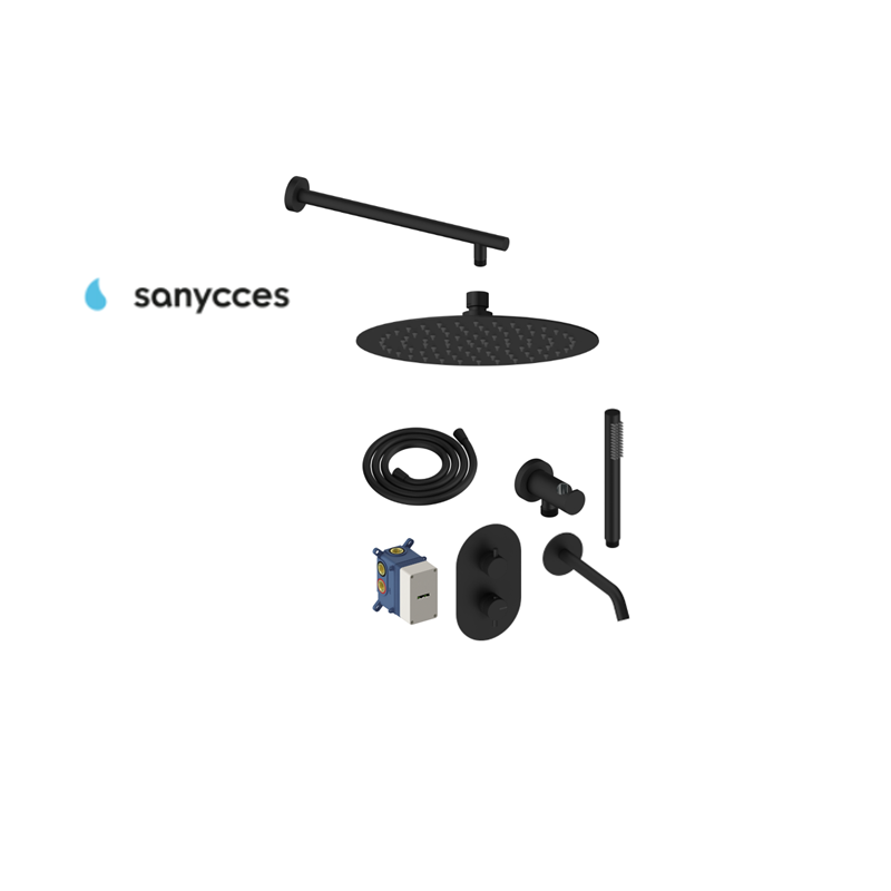 Termostatinė potinkinė dušo sistema su snapu voniai Sanycces juoda matinė (spalvų pasirinkimas)