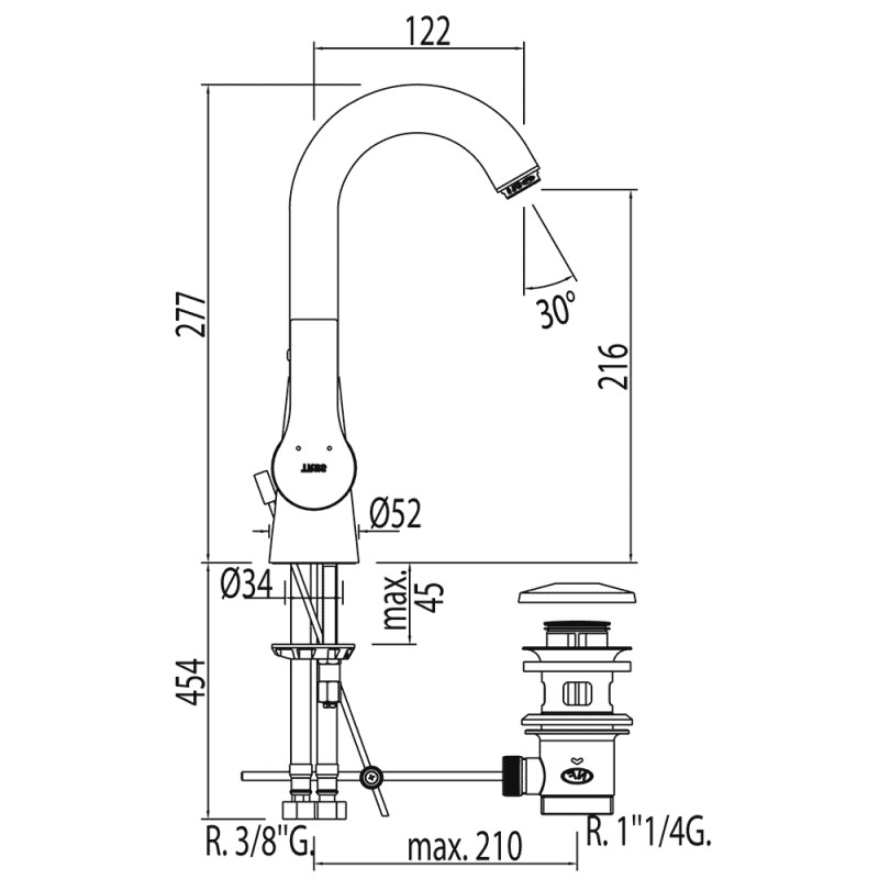 Aukštas praustuvo maišytuvas Tres K-Tres 069.308.02.D