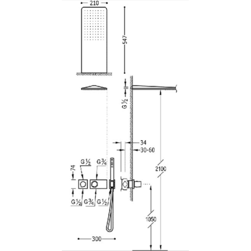 Potinkinė termostatinė dušo sistema Tres Loft aukso spalva 20735202OR