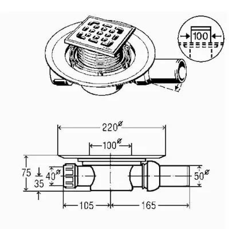 Dušo trapas Viega su nerūdijančio plieno grotelėmis 100x100 su sandarinimo žiedu