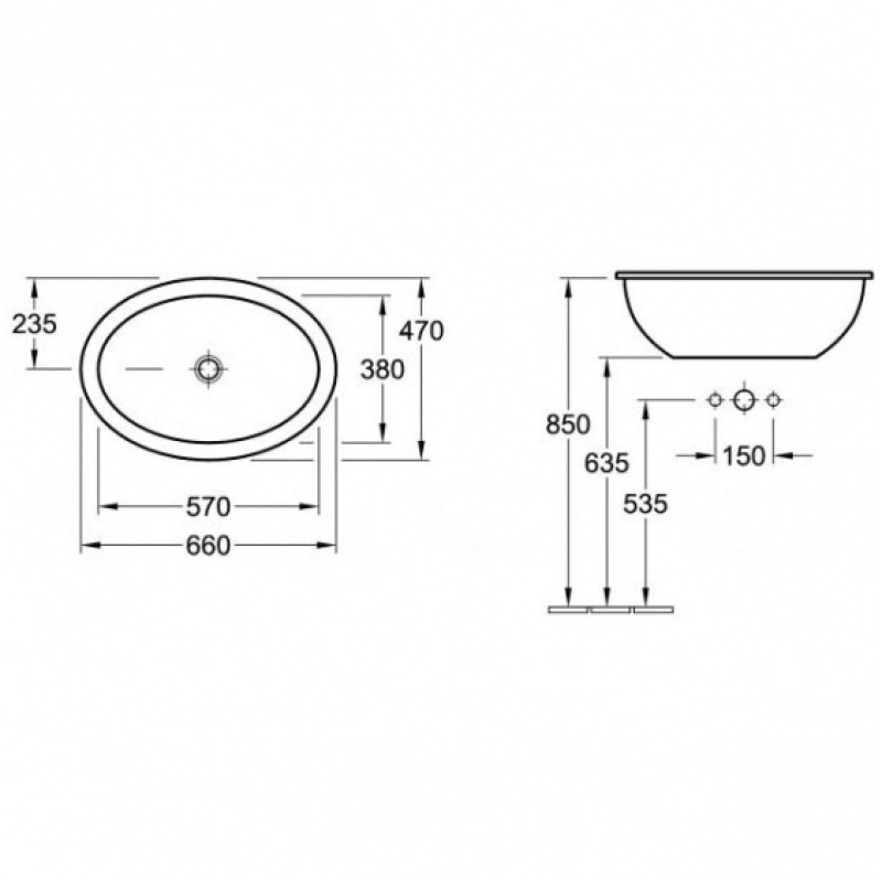 Villeroy & Boch Loop & Friends įleidžiamas praustuvas, 66 x 38 cm, su persipylimu, baltas.