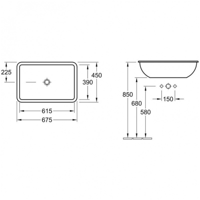 Villeroy & Boch Loop & Friends įleidžiamas praustuvas, 67,5 x 45 cm, baltas