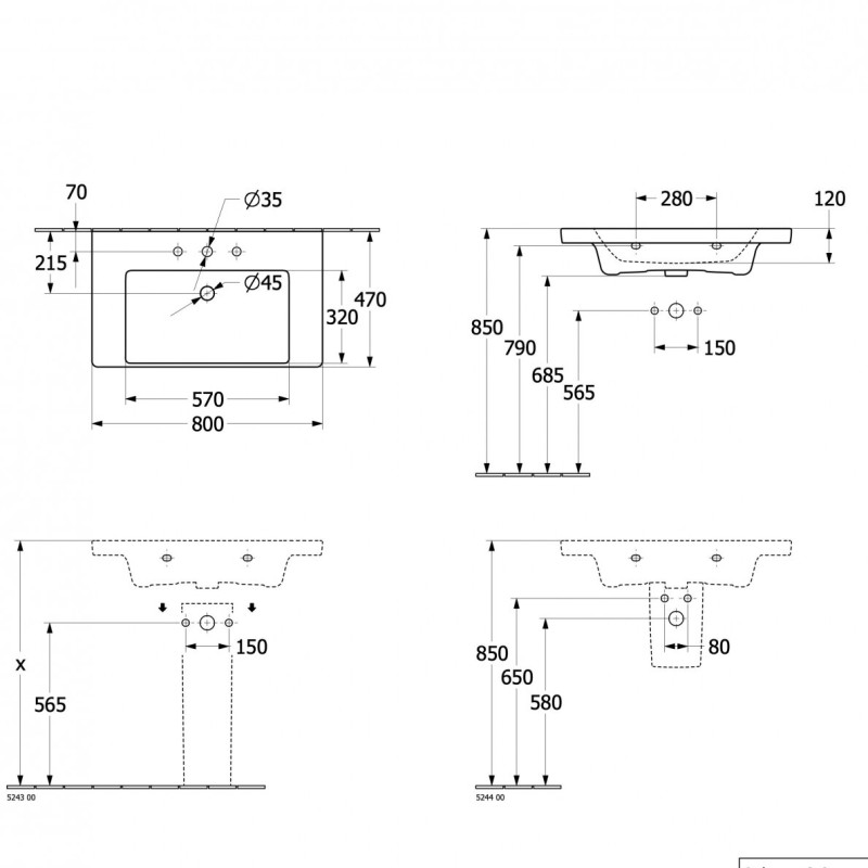 Villeroy & Boch praustuvas Subway 3.0 800 x 470 Su ceramic plus danga