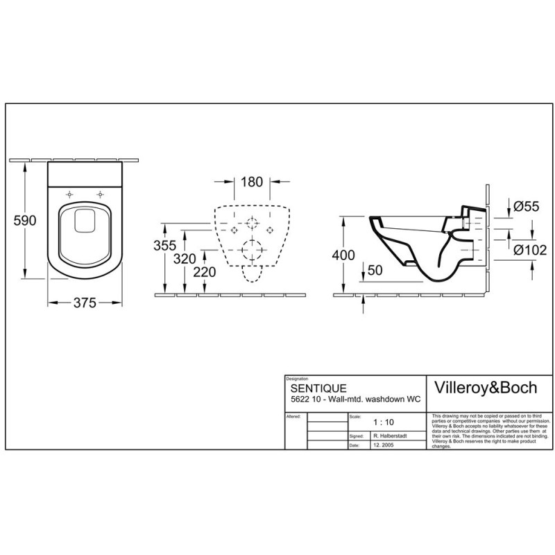 Pakabinamas unitazas Villeroy & Boch Sentique stačiu išbėgimu.