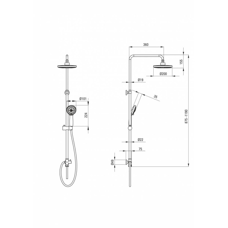 - Reguliuojamas lietaus dušo aukštis
