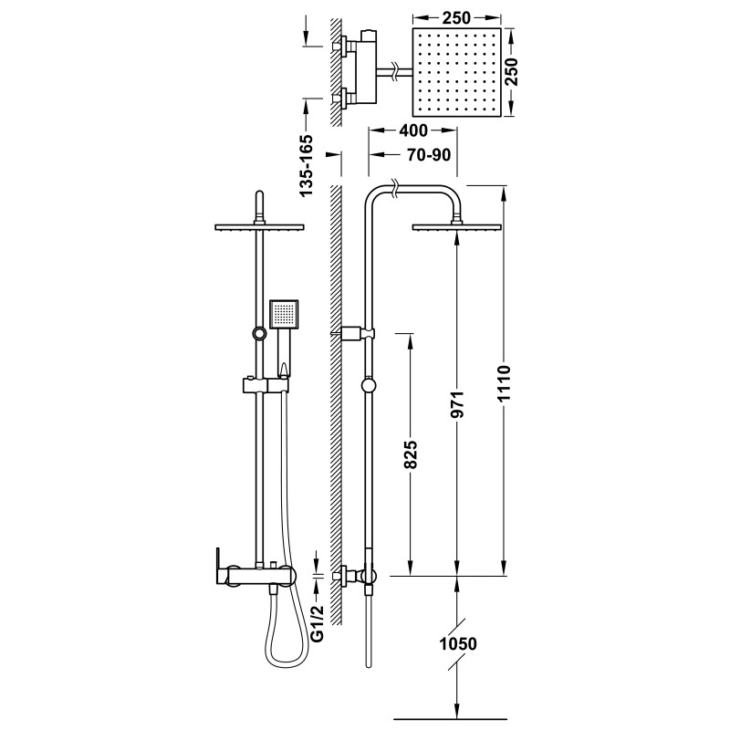Virštinkinė dušo sistema Tres Lex-Tres Selection 081.193.01