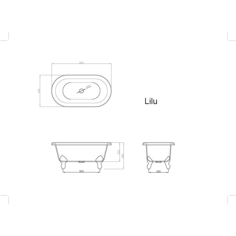 Vispool akmens masės vonia LILU 800x 425x 355 mm