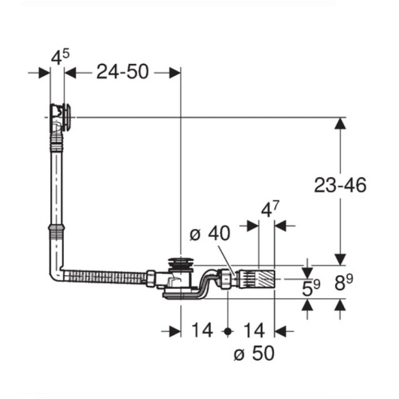 Uniflex PushControl vonios sifonas, su paspaudimo funkcija, padidinto vandens pralaidumo, skirtas ilgoms vonioms.