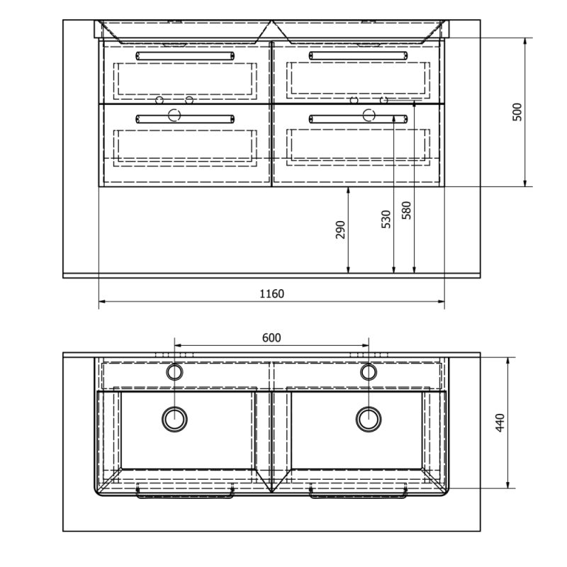 Vonios spintelė su dvigubu praustuvu Sapho THEIA 120cm